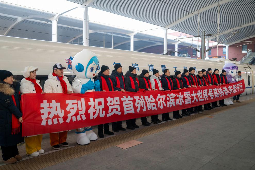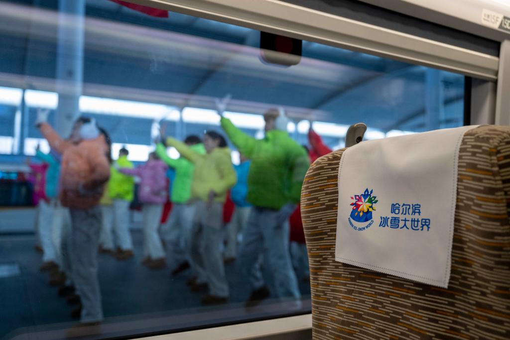 【新華社ハルビン1月6日】中国黒竜江省ハルビン市の氷雪テーマパーク「ハルビン氷雪大世界」をテーマとする高速鉄道列車の第1便となるG1276号が4日、ハルビン西駅を出発し最終目的地の湖北省武漢駅に向かった。