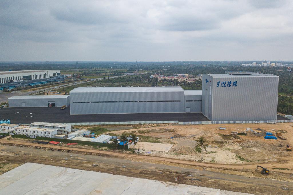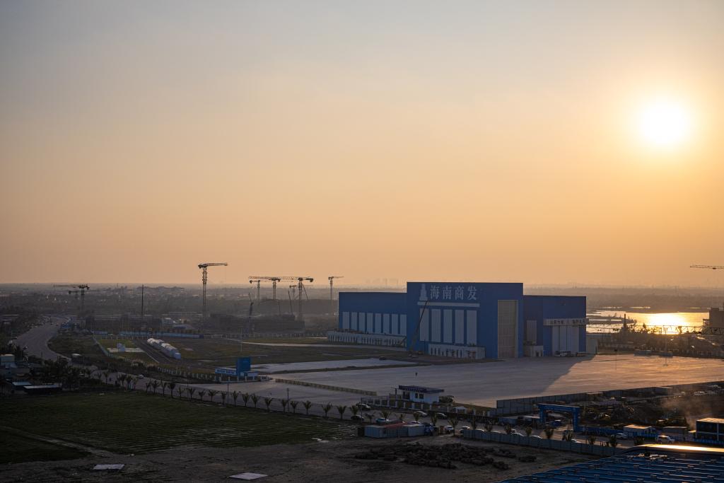 12月26日、海南省文昌市の商用ロケット企業、星際栄耀航天科技集団の運搬ロケット組み立て・試験・再利用工場。(ドローンから、文昌=新華社記者/蒲暁旭)