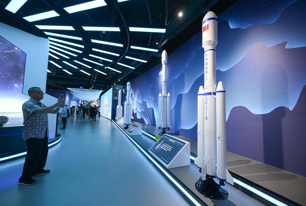 12月23日、海南省文昌市の文昌宇宙科学普及センターを見学する観光客。(文昌=新華社記者/蒲暁旭)