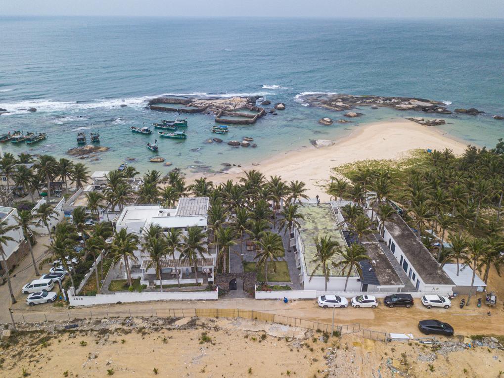 12月26日、海南省文昌市竜楼鎮海辺村にある民宿とカフェ。(ドローンから、文昌=新華社記者/蒲暁旭)