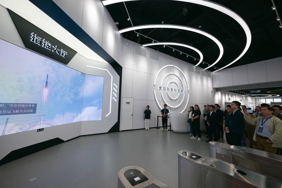 12月23日、海南省文昌市の文昌宇宙科学普及センターを見学する観光客。ードを感じている。かつて漁業を生業としていた村には、特色ある民宿やレストラン、カフェが相次ぎ誕生している。(文昌=新華社記者/蒲暁旭)