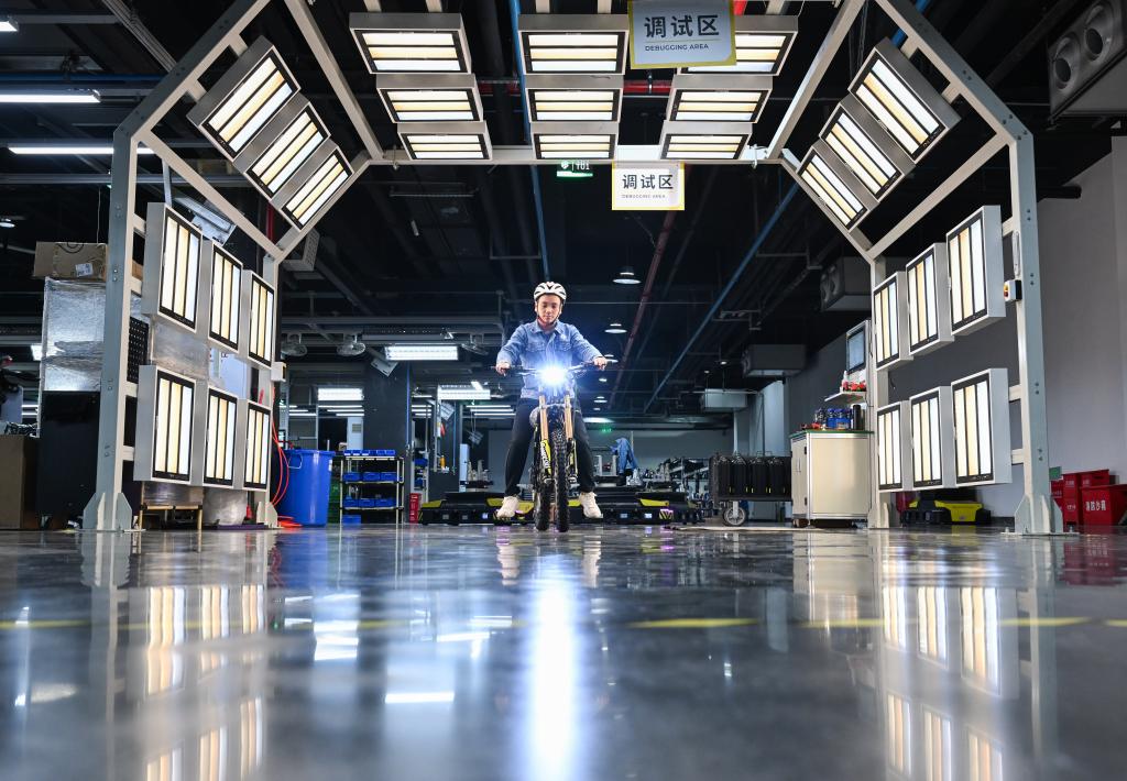 12月24日、新エネバイクの組み立てが行われている虬竜科技の工場。(重慶=新華社記者/陳誠)