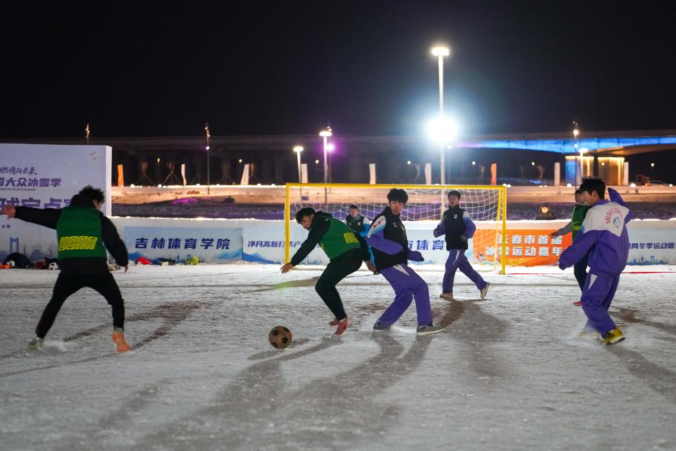 6日、始動式の会場で雪上サッカーを楽しむ市民。(長春=新華社記者/許暢)