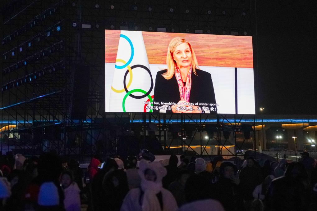 6日、ビデオを通じてあいさつする国際オリンピック委員会(IOC)のコベントリー会長。(長春=新華社記者/許暢)