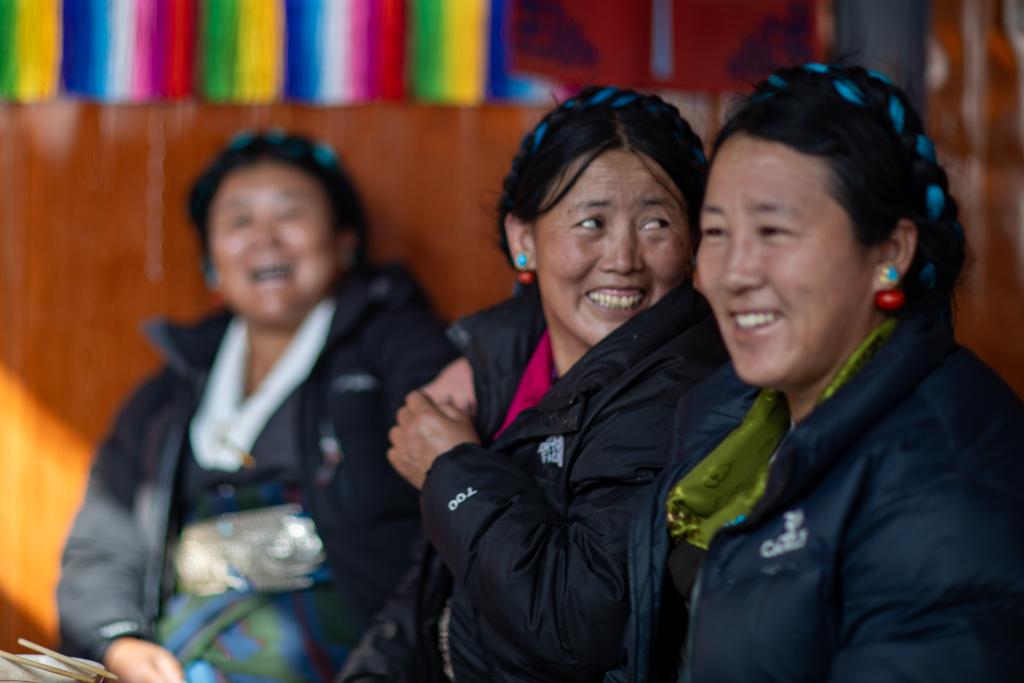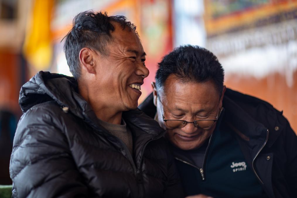 5日、シガツェ市ティンリ県長所郷森嘎村にある茶館でくつろぐ住民。(シガツェ=新華社記者/姜帆)