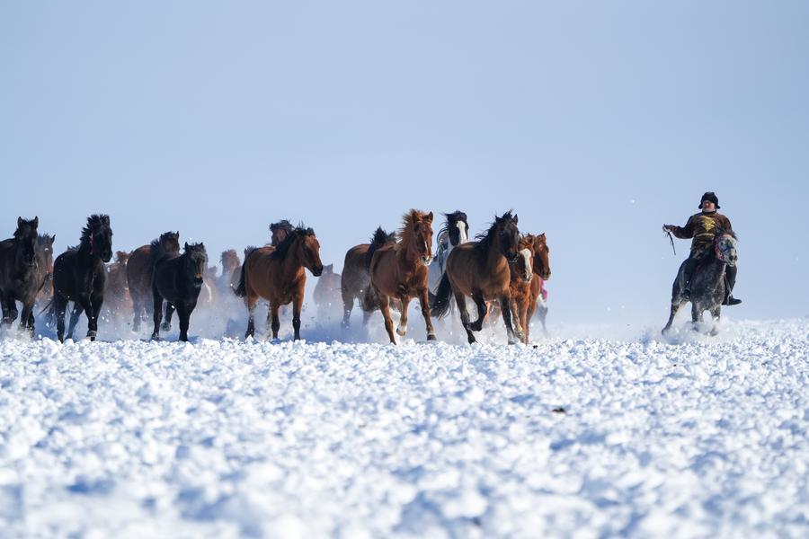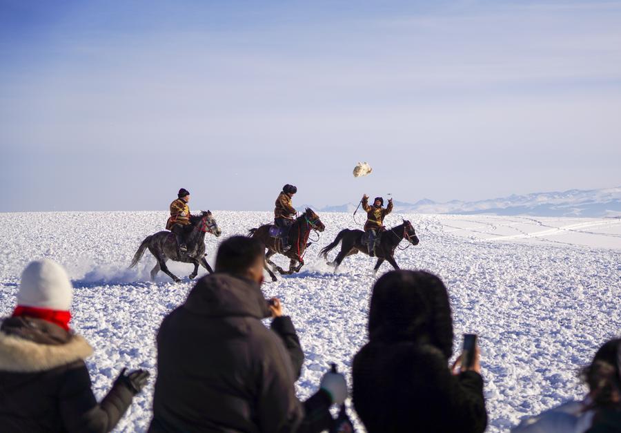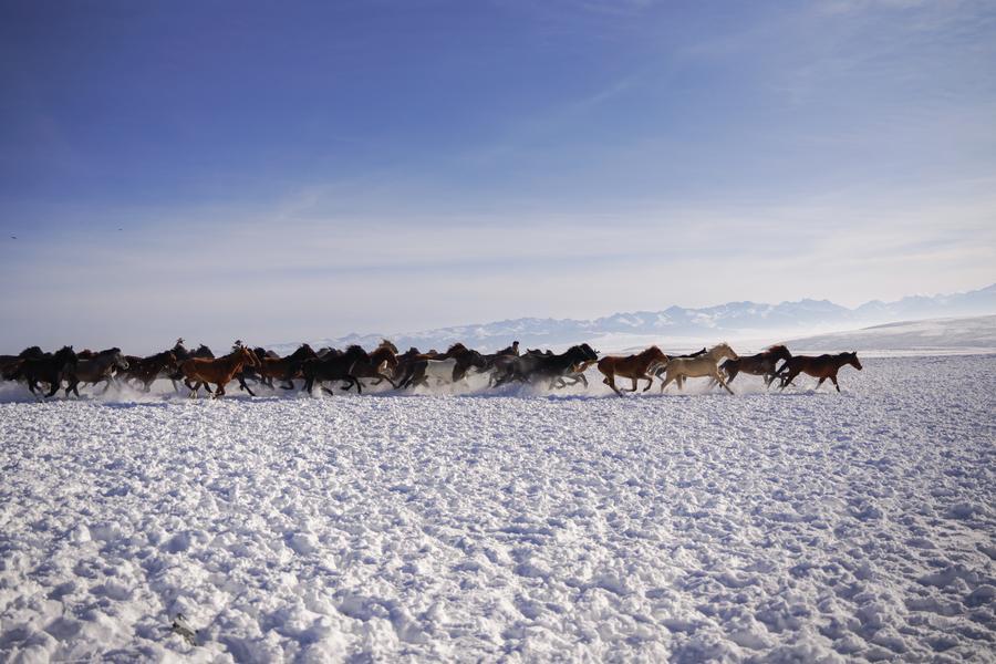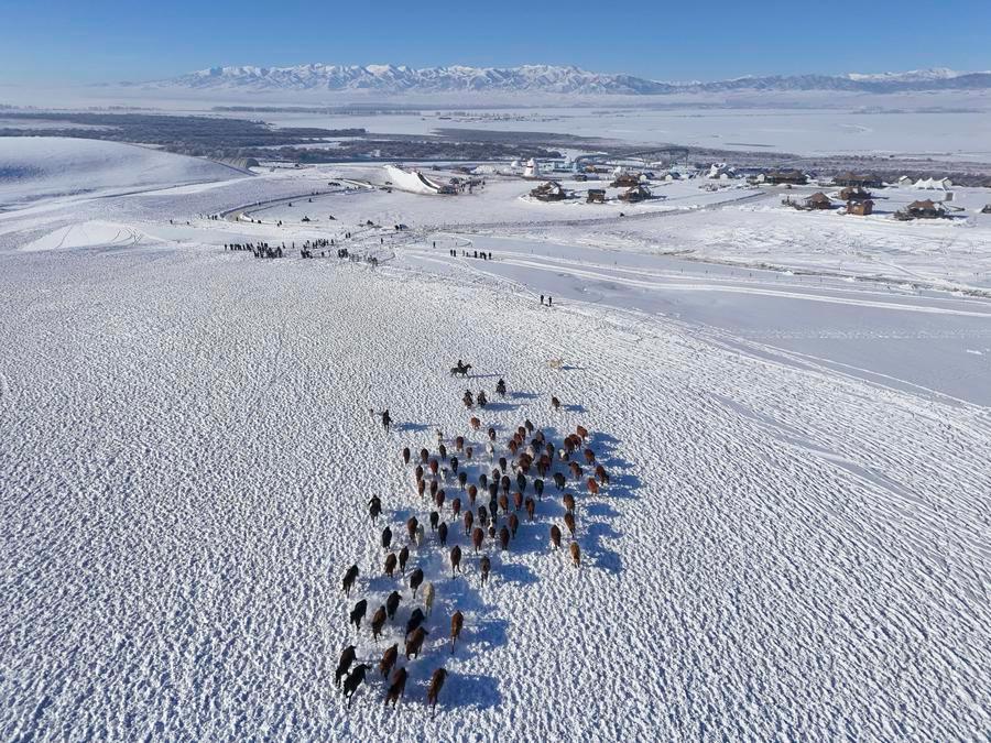 【新華社ウルムチ1月10日】中国新疆ウイグル自治区イリ・カザフ自治州昭蘇(モンゴルキュレ)県は真冬を迎え、一面に銀世界が広がっている。地元では、特色ある氷雪資源を生かして、氷雪パークや雪原を疾走する馬のパフォーマンスなど、雪と氷をテーマにしたアクティビティーを開発。各地の観光客を呼び込んでいる。