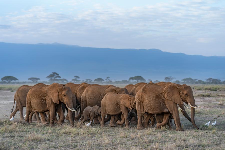 【新華社ナイロビ1月10日】ケニアのアンボセリ国立公園は、タンザニアとの国境地帯に位置し、アフリカ最高峰のキリマンジャロ山麓に広がる、世界的に知られた観光名所だ。敷地面積は約390平方キロに及び、広大な草原にはゾウやライオン、レイヨウなど多種多様な野生動物が生息している。