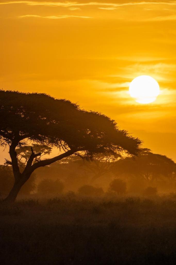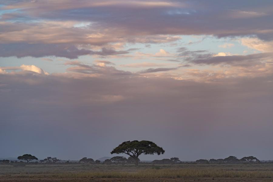 8日、ケニアのアンボセリ国立公園の夜明け。(ナイロビ=新華社記者/謝剣飛)
