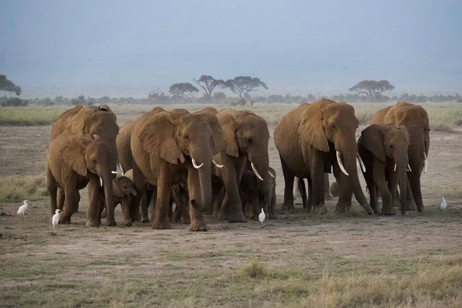8日、ケニアのアンボセリ国立公園に生息するゾウの群れ。(ナイロビ=新華社記者/謝剣飛)