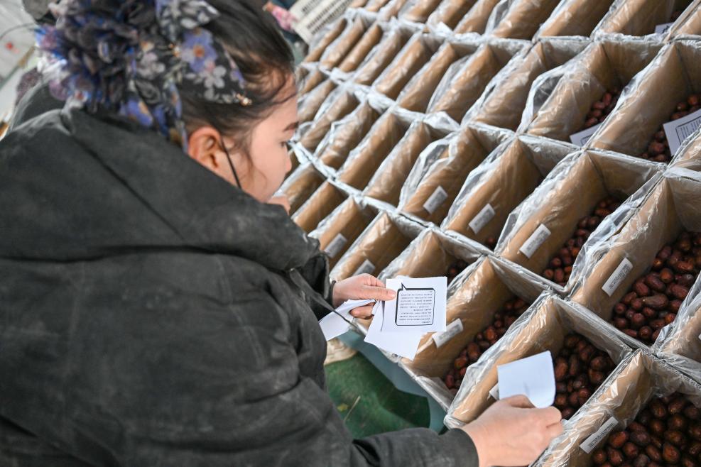 【新華社ホータン1月11日】春節(旧正月、今年は2月17日)を前に、中国新疆ウイグル自治区の年越し用品が出荷の最盛期を迎えている。和田(ホータン)地区産の薄皮クルミやナツメなどの特産品は、季節の贈り物として全国で人気がある。