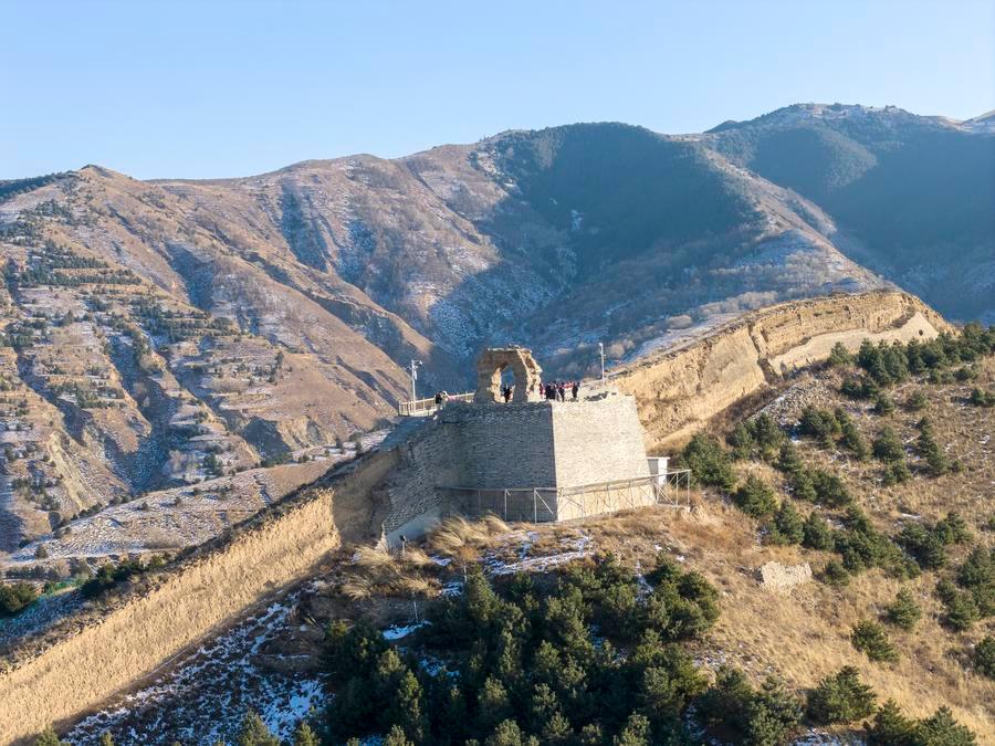 6日、山西省朔州市山陰県の広武長城。(ドローンから、朔州=新華社記者/楊晨光)