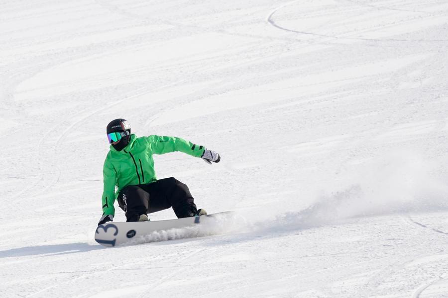 7日、山西省朔州市山陰県の広武国際スキー場でスノーボードを楽しむ客。(朔州=新華社記者/楊晨光)