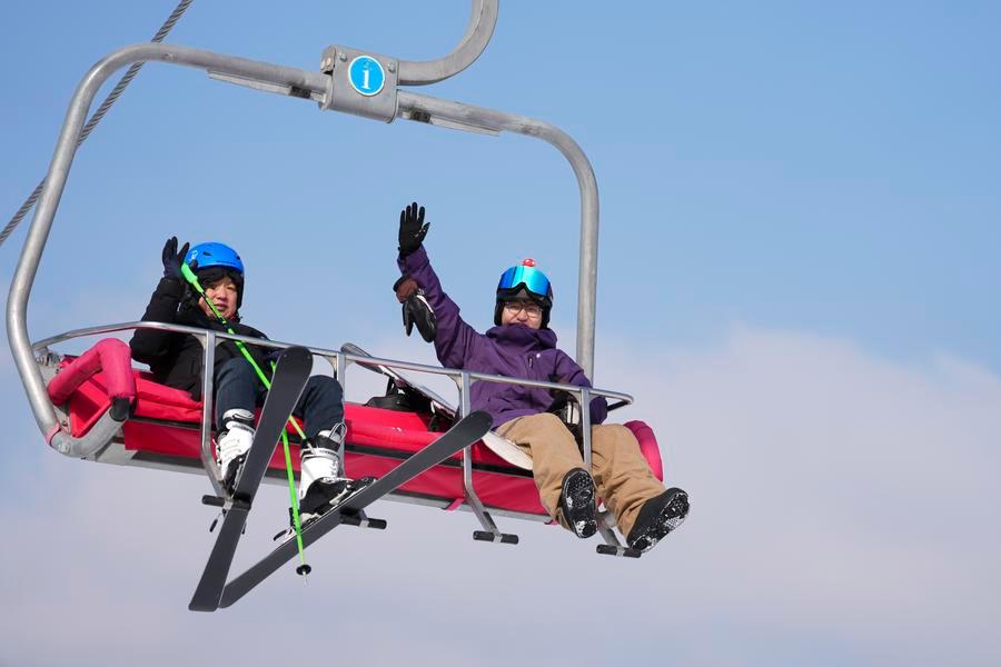 7日、山西省朔州市山陰県の広武国際スキー場でリフトに乗る客。(朔州=新華社記者/楊晨光)