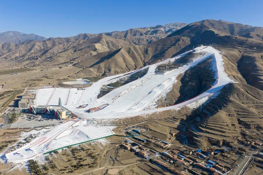 8日、山西省朔州市山陰県の広武国際スキー場。(ドローンから、朔州=新華社記者/楊晨光)
