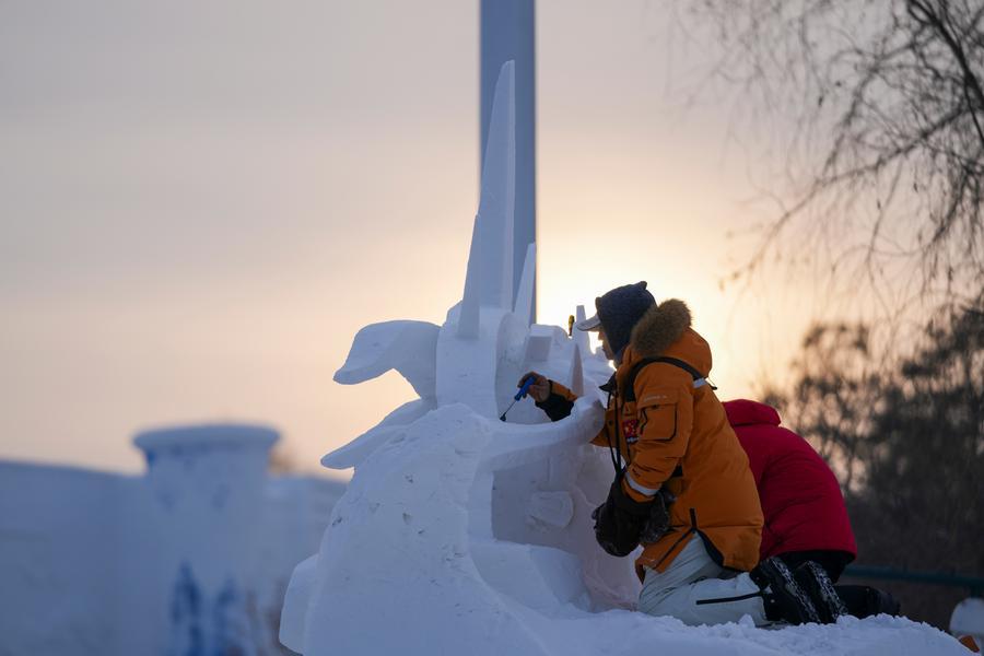 【新華社ハルビン1月11日】中国黒竜江省ハルビン市で6~9日に開催された第28回ハルビン国際雪像彫刻コンテストでは、厳しい寒さの中、さまざまな作品がお目見えした。