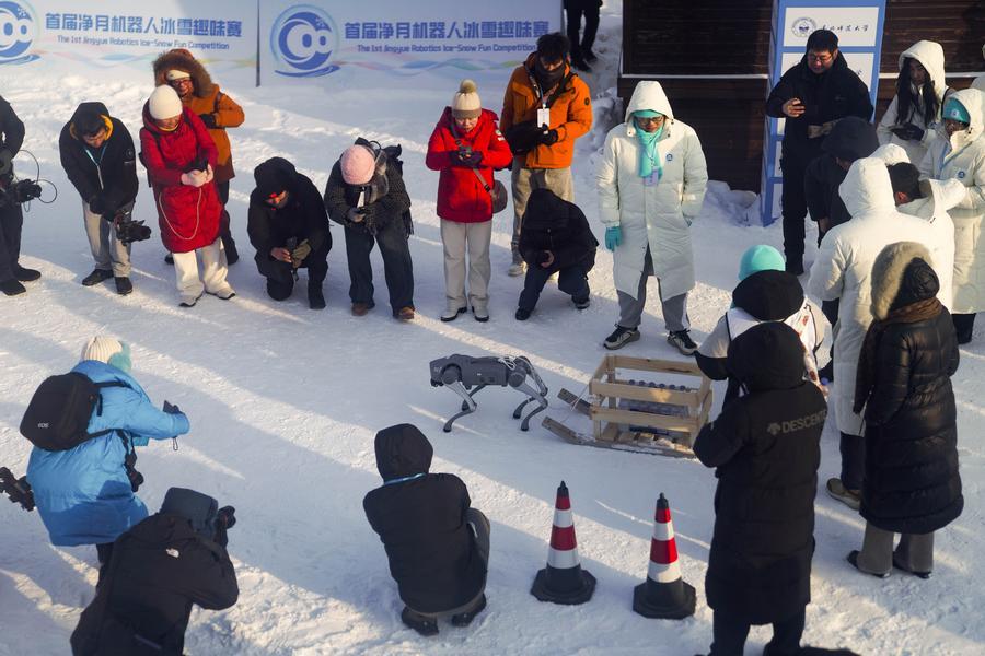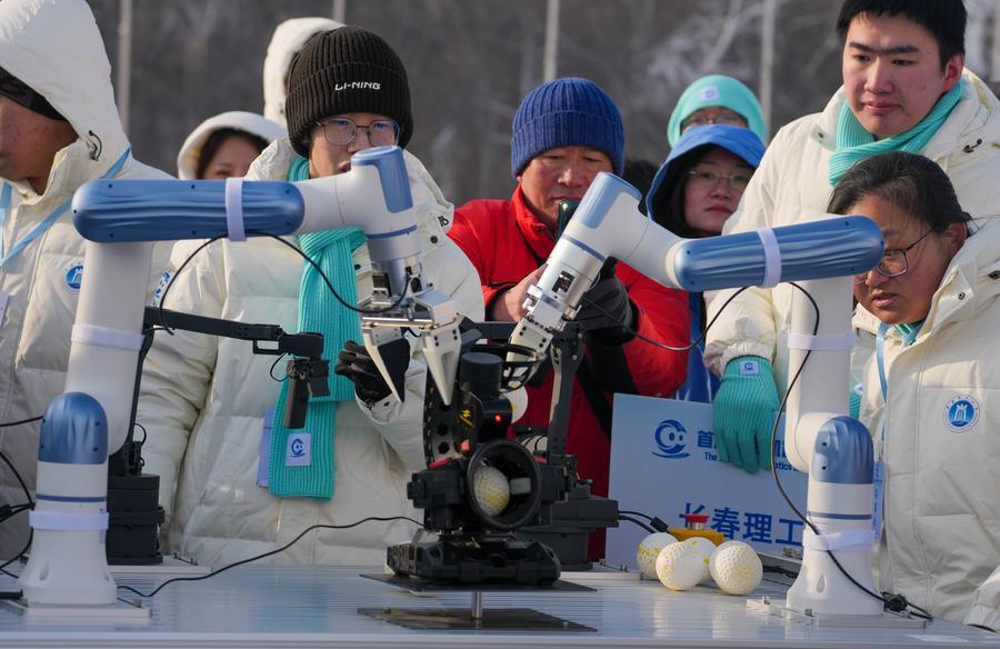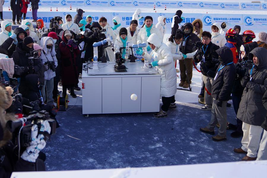 【新華社長春1月11日】中国吉林省長春市の浄月潭国家級風景名勝区で10日、ロボットによる氷雪競技会が行われた。大学と企業から20チーム以上が参加し、氷点下20度の厳寒の中、そりや雪玉投げ、スキーなどの種目で競い合った。