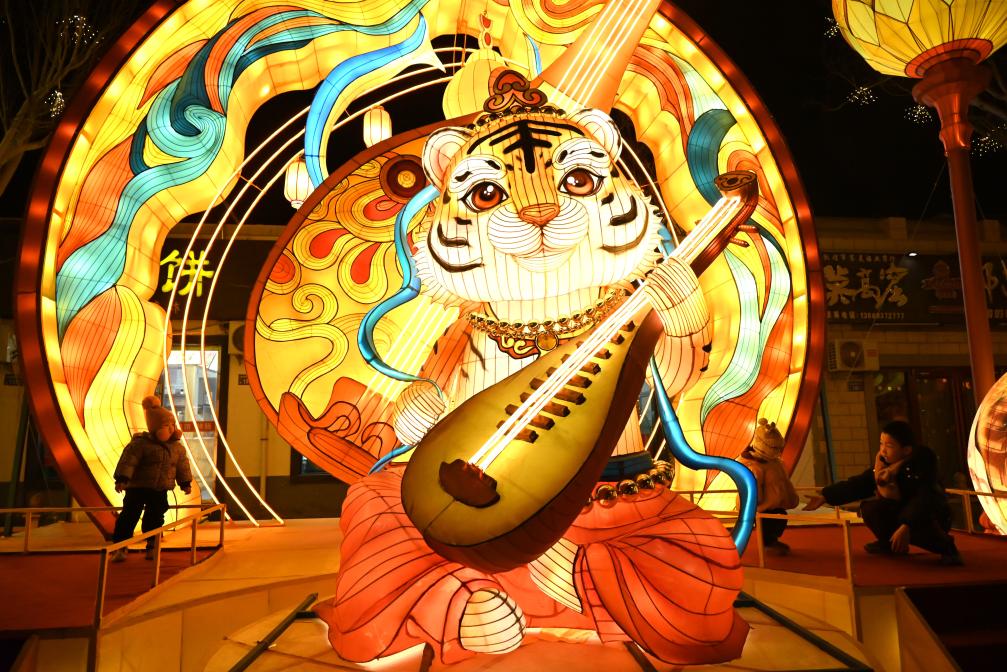 9日、敦煌灯会を楽しむ人々。(敦煌=新華社配信/張暁亮)
