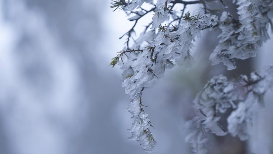 7日、梁王山に出現した霧氷。(澄江=新華社配信/謝羅凱)