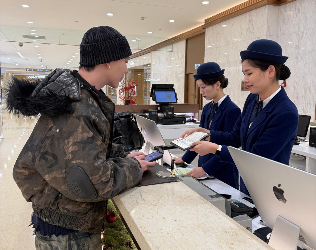 6日、重慶市両江新区の免税カウンター(タックスフリーカウンター)で、税還付手続きをするベトナム人観光客。(重慶=新華社記者/黄偉)