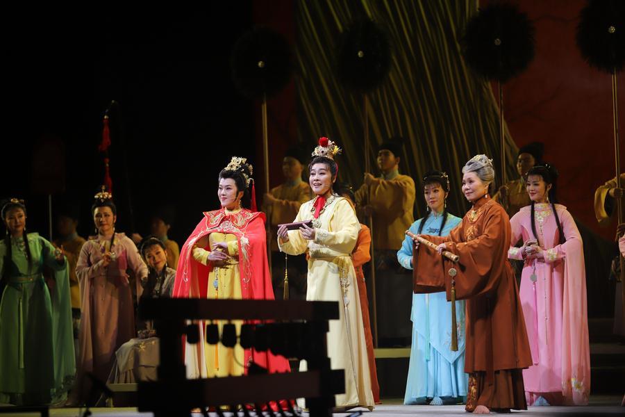 山東省浜州市の浜州大劇院で上演された伝統芸能「呂劇」の一場面。(2025年5月6日撮影、浜州=新華社配信/郭志華)