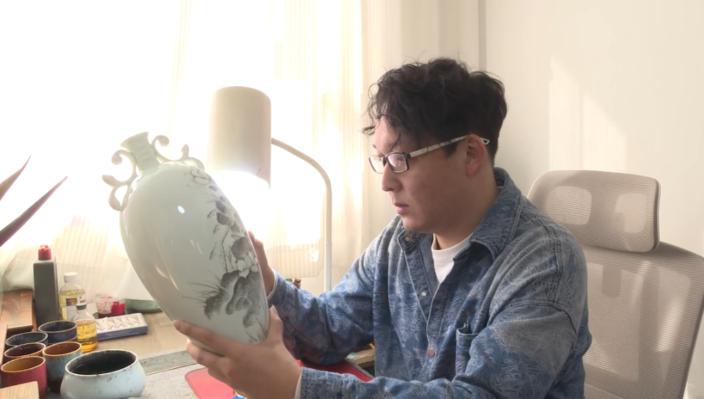 【新華社済南1月14日】中国山東省淄博市に伝わる伝統工芸「刻瓷(こくじ)」の新たな表現に挑む若手作家がいる。市内の淄川区にある工房で制作に励むのは、1994年生まれの劉津丞(りゅう・しんしょう)さんだ。