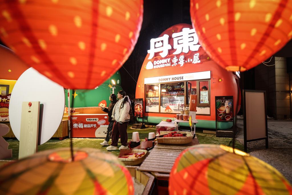 12日、遼寧省丹東市のイチゴをテーマにしたポップアップ店。(東港=新華社記者/潘昱竜)