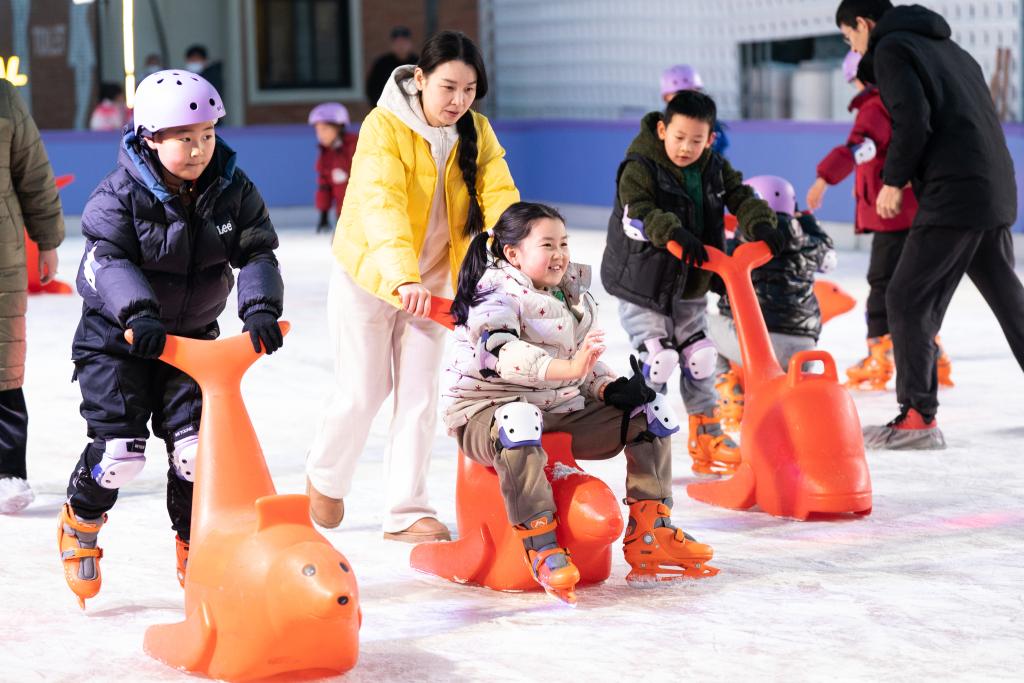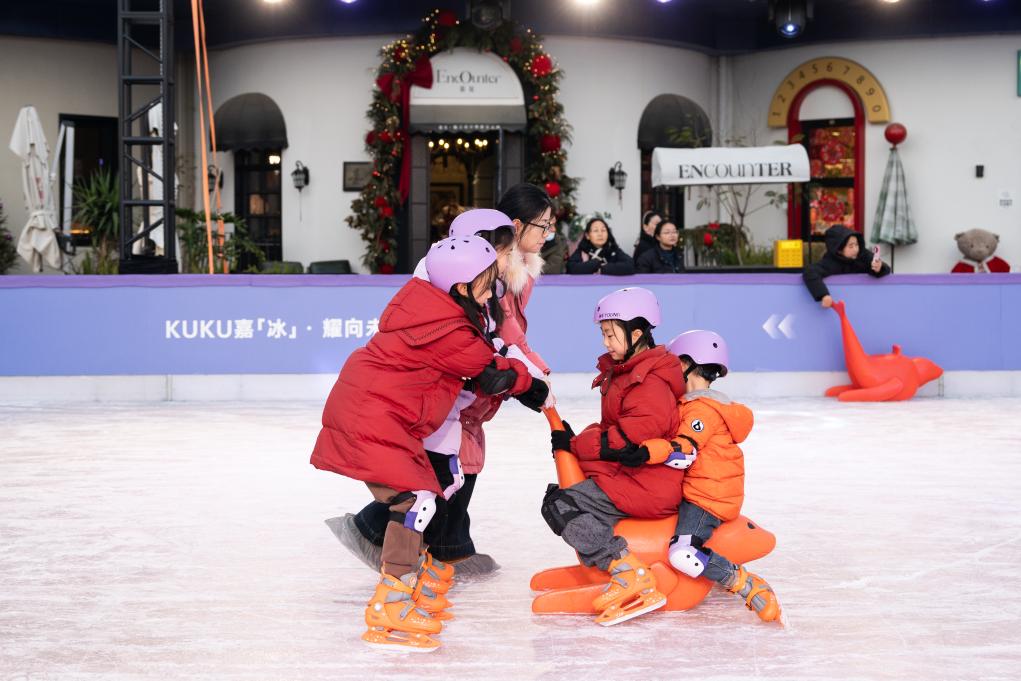 10日、安徽省合肥市の「新糧倉商業合集」で氷上アクティビティーを楽しむ客。(合肥=新華社記者/杜宇)