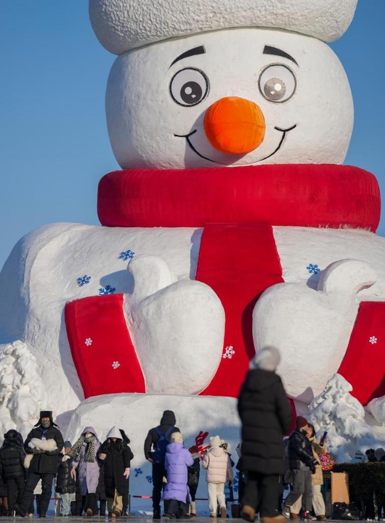 【新華社ハルビン1月17日】中国黒竜江省では今冬、多彩なデザインの巨大雪だるまが次々と登場している。かわいらしい姿は北国の景観にぬくもりを添える。