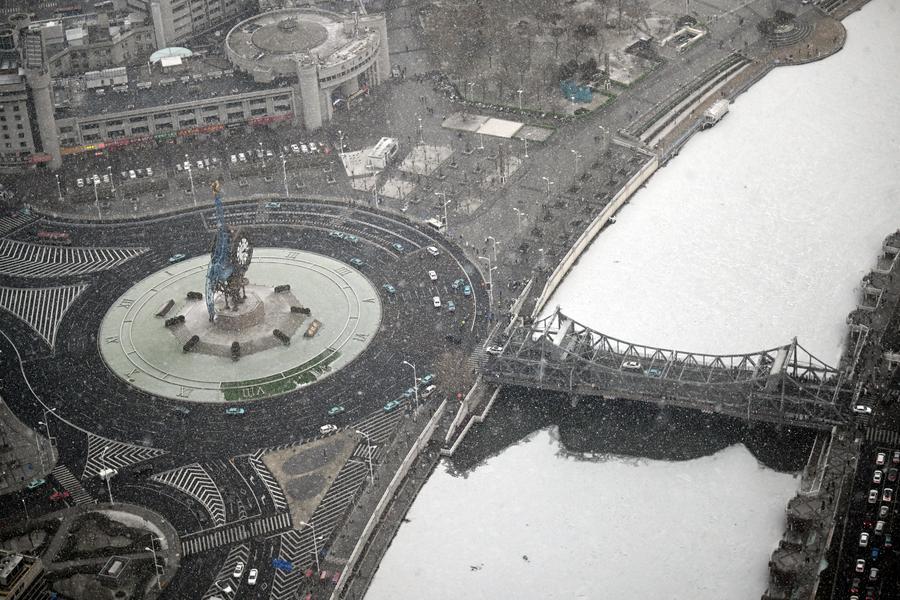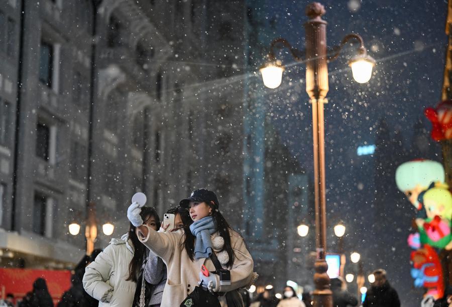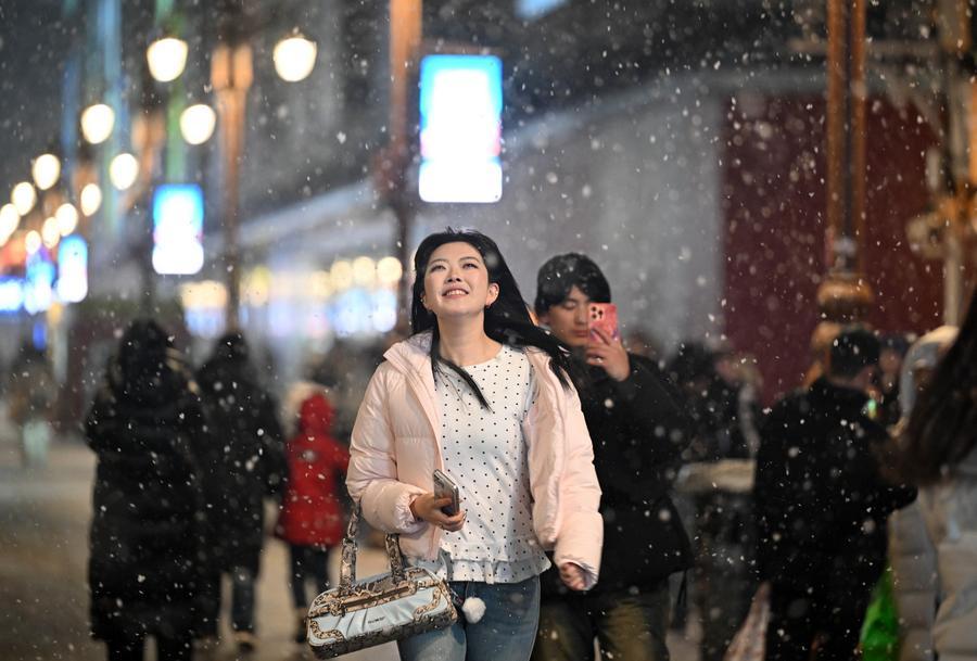 【新華社天津1月17日】中国天津市で17日、今年の初雪が観測された。人々は街へ繰り出し、写真や動画で雪が街を包み込む美しい瞬間を記録した。