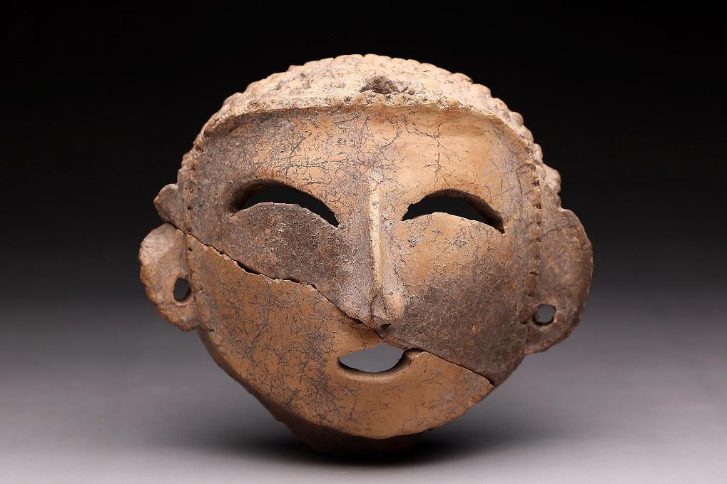 渭南市の蒋家遺跡から出土した陶製の人面像。(資料写真、西安=新華社配信)