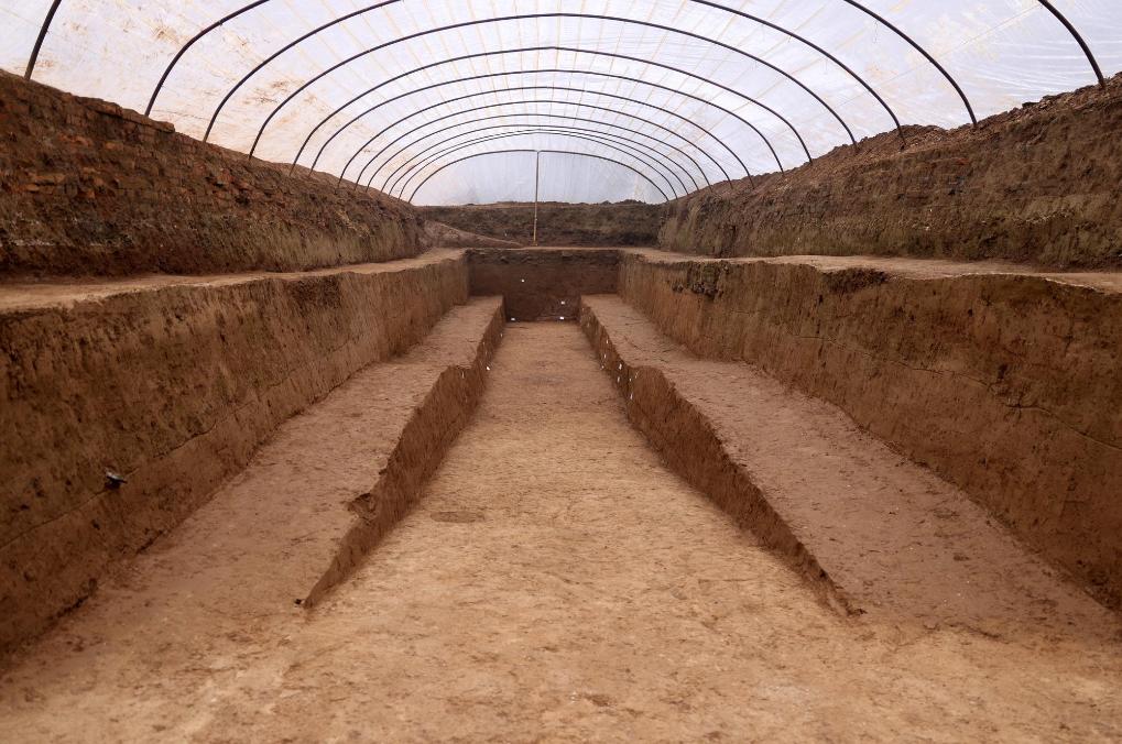 西安市の秦阿房宮前殿遺跡の発掘現場。(資料写真、西安=新華社配信)