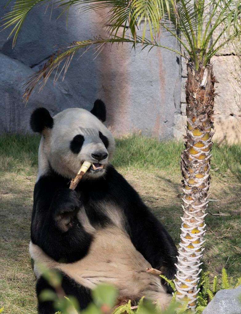 17日、竹を食べる四川省成都からやって来たパンダの「艾倫(アイルン)」。 (福州=新華社記者/魏培全)
