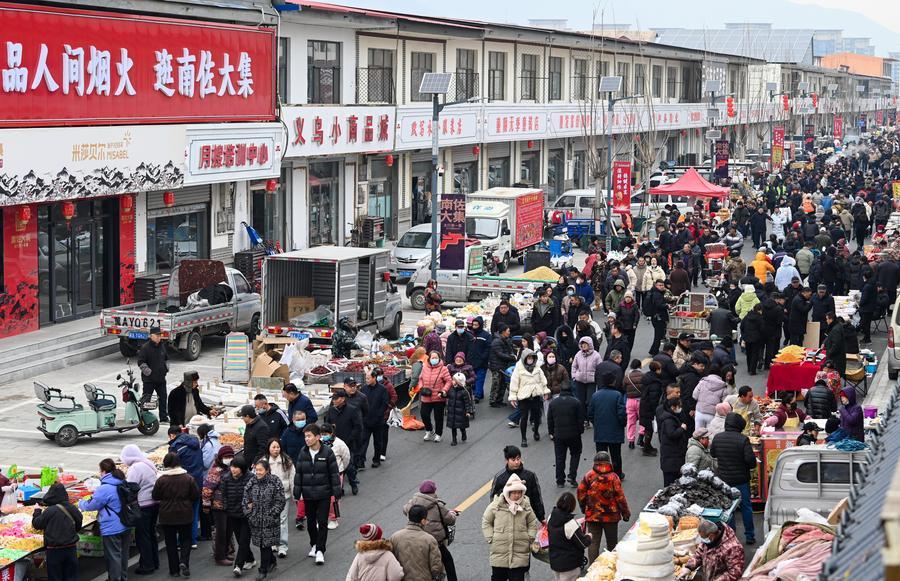 14日、買い物客でにぎわう南佐大集。(石家荘=新華社記者/楊世尭)