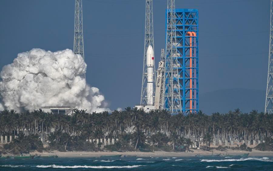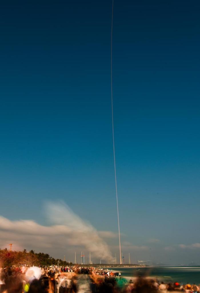 19日、海南商業宇宙発射場から打ち上げられる運搬ロケット「長征12号」。(文昌=新華社記者/楊冠宇)