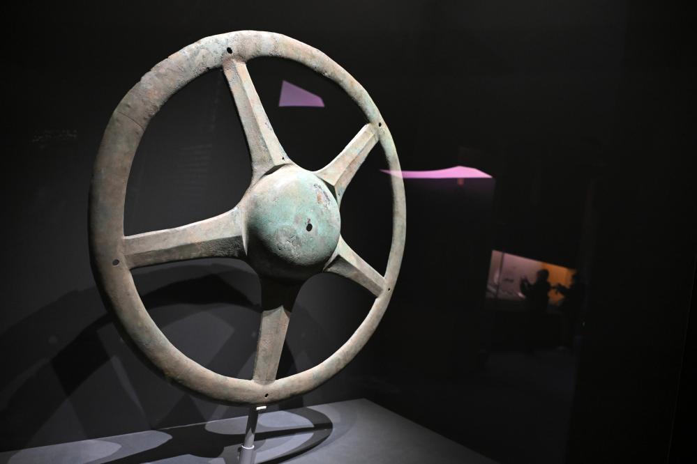 18日、会場に展示された太陽形の青銅器。(北京=新華社記者/金良快)