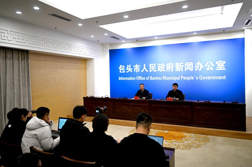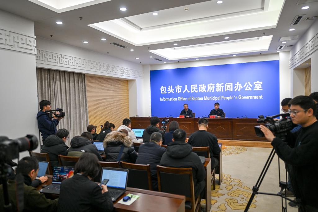 19日、爆発事故に関する記者会見。(包頭=新華社記者/連振)