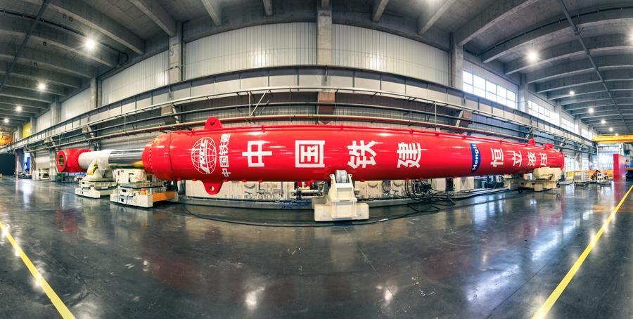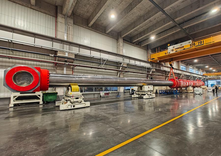 15日、中国鉄建大橋工程局集団が投資、建造した開閉油圧シリンダー。(南京=新華社配信)