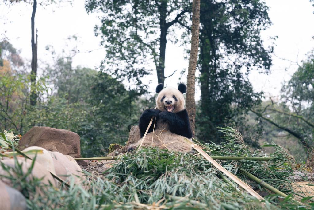 13日、竹を食べるシャンシャン。(成都=新華社配信/Panda365提供)