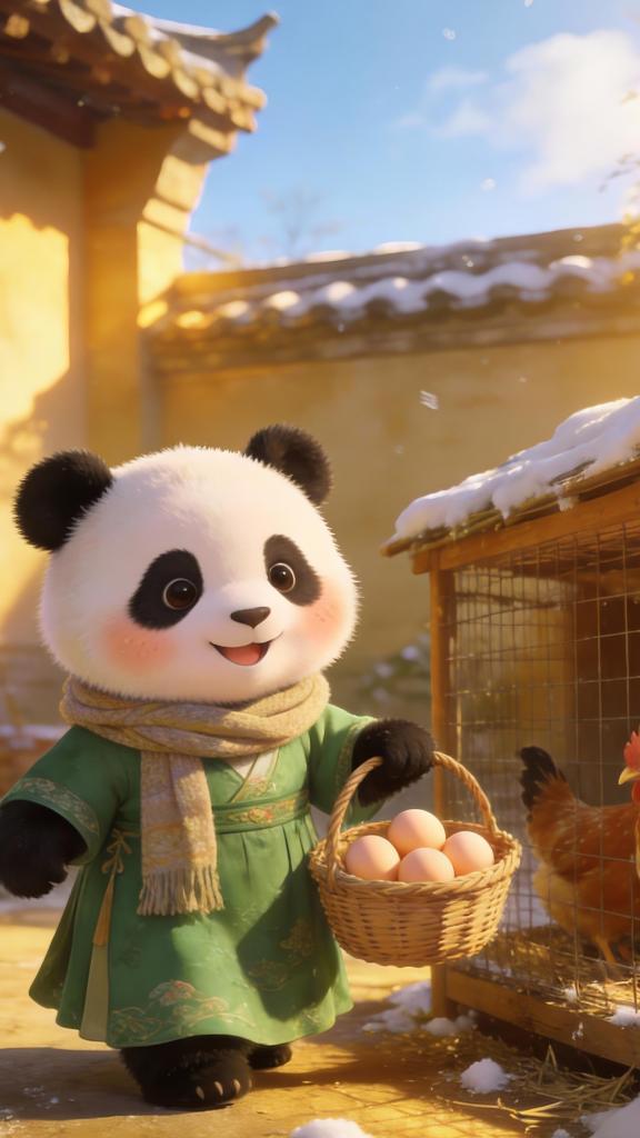 鶏舎から卵を集める様子を表した壁紙。(北京=新華社配信)