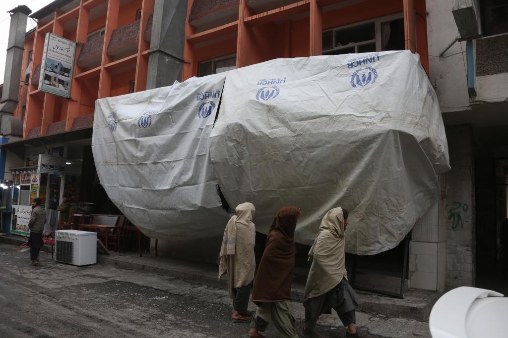 20日、アフガニスタンの首都カブールで撮影した爆発が起きた建物。(カブール=新華社配信)