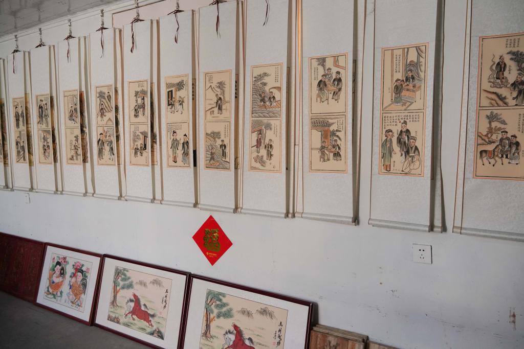 9日、山東省高密市の東李家荘村で、高密木版年画の代表的伝承者、李連中(り・れんちゅう)さんが所蔵している作品。(高密=新華社配信/李海濤)