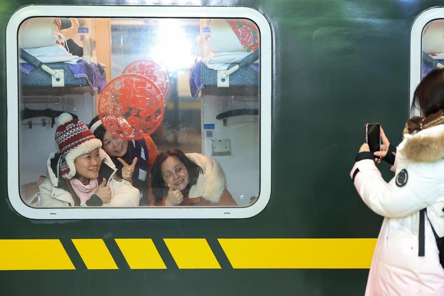【新華社ハルビン1月22日】中国黒竜江省のハルビン駅で19日午後6時20分(日本時間同7時20分)、K7041東北民俗テーマ列車が外国人観光客を乗せ、中国最北の同省漠河市に向けて出発した。乗客は氷雪の魅力を体験するシンガポール人やマレーシア人など100人余り。同列車は初めて国外から大規模なツアーを受け入れた。