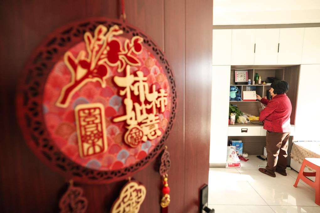 14日、自宅の庭で年越しの準備をする祝家溝村の住民。(葫蘆島=新華社配信/田嘉)