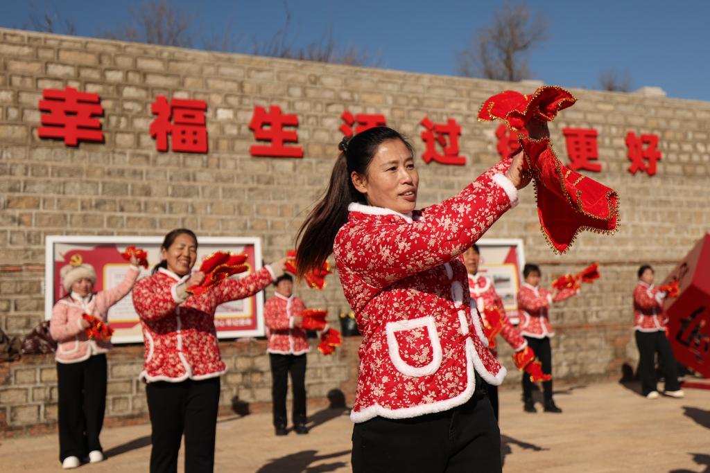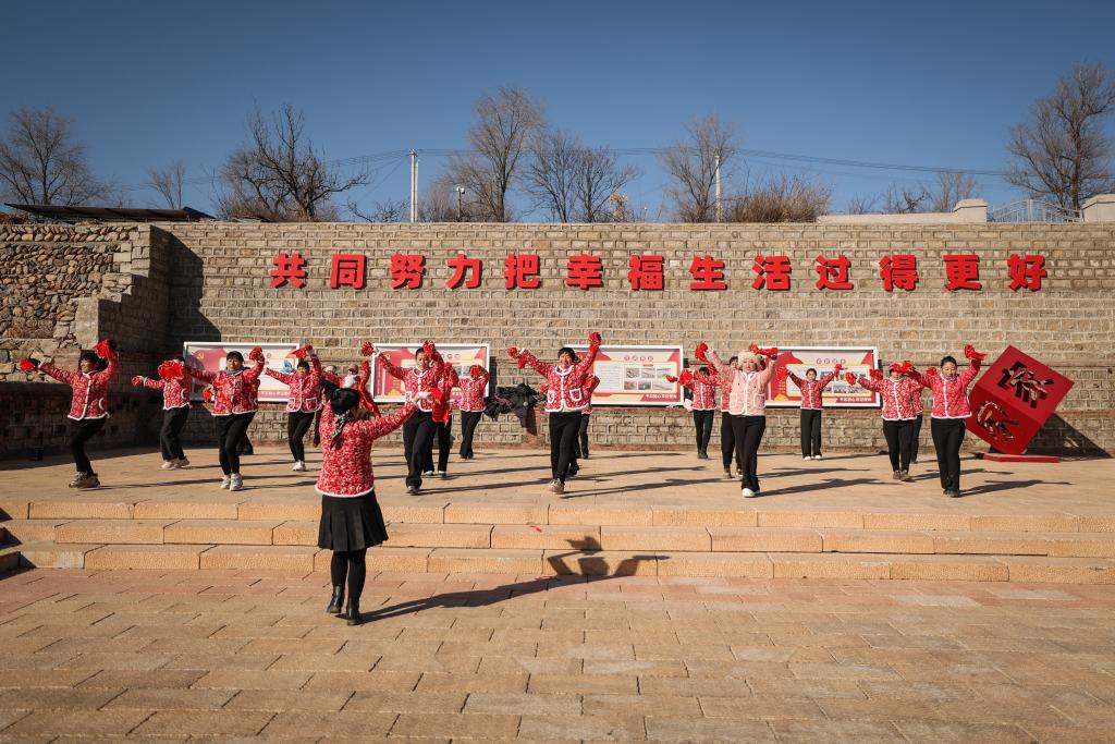 20日、祝家溝村の文化広場でダンスを練習する住民。(葫蘆島=新華社記者/潘昱竜)