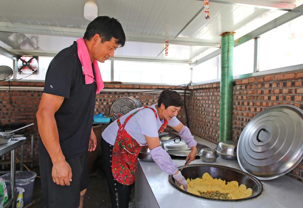 「農家楽(アグリツーリズム)」の利用客に昼食の準備をする祝家溝村の住民。(2025年7月2日撮影、葫蘆島=新華社配信/田嘉)