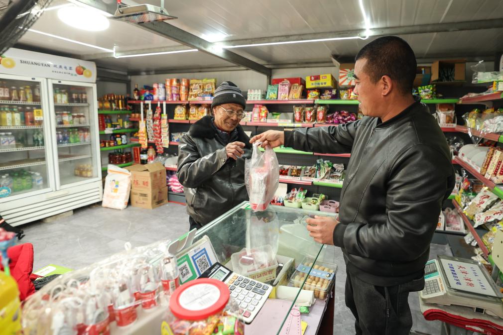 20日、祝家溝村のスーパーで買い物をする住民。(葫蘆島=新華社記者/潘昱竜)