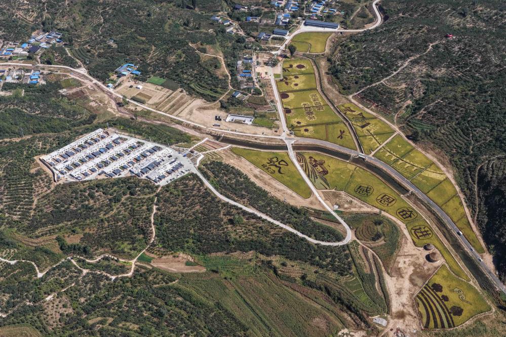 綏中県祝家溝村の田んぼアート。(2025年9月、ドローンから、葫蘆島=新華社配信/田嘉)