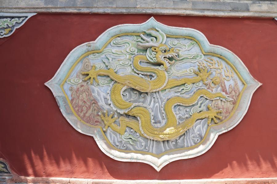 永陵啓運門の雲竜袖壁(正紅門両側の装飾壁)。(2025年7月4日撮影、撫順=新華社記者/藍建中)