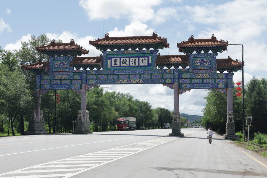 永陵前の「前清故里」牌楼。(2025年7月4日撮影、撫順=新華社記者/藍建中)