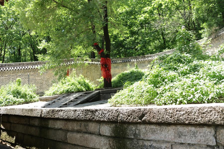 永陵の啓運門と古井戸(左手前)。(2025年7月4日撮影、撫順=新華社記者/藍建中)